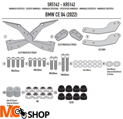 GIVI STELAŻ KUFRA CENTRALNEGO BEZ PŁYTY BMW CE 04