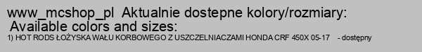 HOT RODS K063 ŁOŻYSKA WAŁU KORBOWEGO HONDA CRF 450X