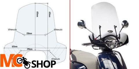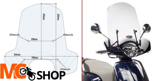 KAPPA SZYBA KYMCO LIKE 125 (17-18) PRZEZROCZYSTA 49,5 x 65,5 cm - POTRZEBNE MOCOWANIE A6109AK