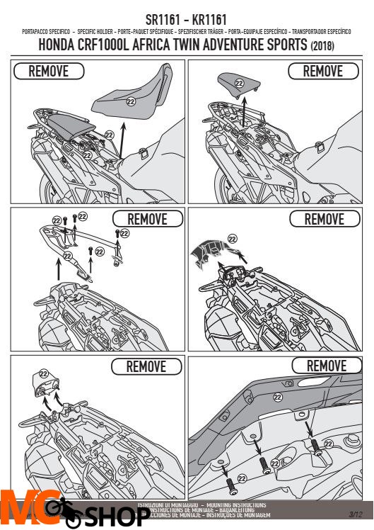 KAPPA KR1161 STELAŻ KUFRA CENTRALNEGO HONDA CRF 1000L AFRICA TWIN (18-19), ADVENTURE SPORTS (18-19) (BEZ PŁYTY).