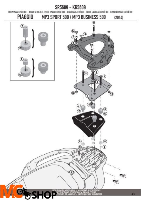 KAPPA KR5609 STELAŻ KUFRA CENTRALNEGO PIAGGIO MP3 300ie-500ie Sport / Business (08/14-17) ( Z PŁYTA MONOKEY )