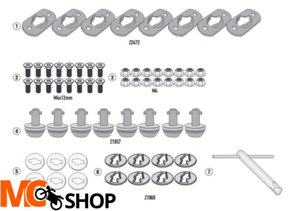 Zestaw RAPID RELEASE do przekształcenia bocznego nośnika kufrów w ramę do szybkiego demontażu.