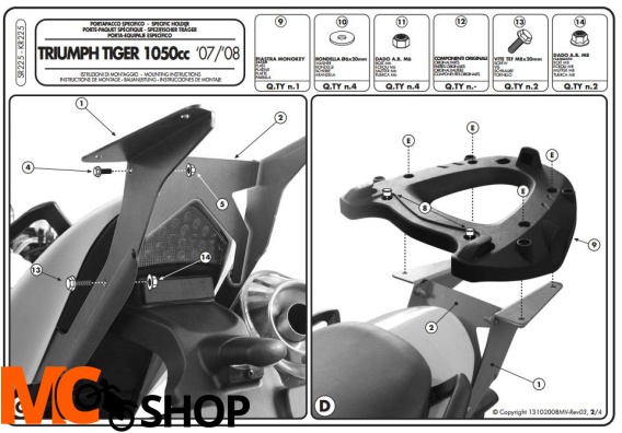 KR225 KAPPA STELAŻ KUFRA CENTRALNEGO TRIUPMPH TIGER 1050 (07-11)