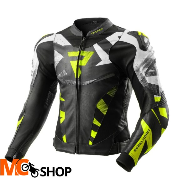 REBELHORN KURTKA SKÓRZANA INFERNO BLACK/WHITE/FLUO YELLOW