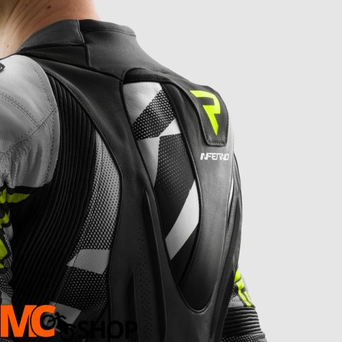 Rebelhorn Inferno oferuje maksymalny poziom ochrony dzięki ochraniaczom RE ZRO® na łokciach, barkach, plecach. Kurtka posiada także kieszeń na ochraniacz klatki piersiowej, który można dokupić osobno. Dodatkowo zewnętrzne slidery na barkach oraz wstawki z materiału Superfabric® wzmacniają szwy, szczególnie w okolicach łokci, zwiększając bezpieczeństwo na trasie i torze.