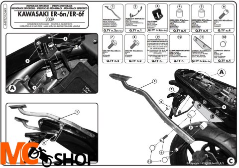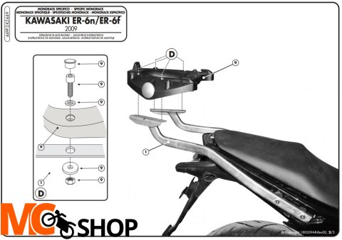 Stelaż centralny Givi 449FZ do ER-6n /6f 650 09-11 pod kufry w systemie MONOLOCK oraz MONOKEY