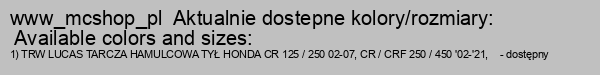 TRW LUCAS MST328EC TARCZA HAMULCOWA TYŁ HONDA CR 125/250 02-07, CRF 250/450R,X 02-14