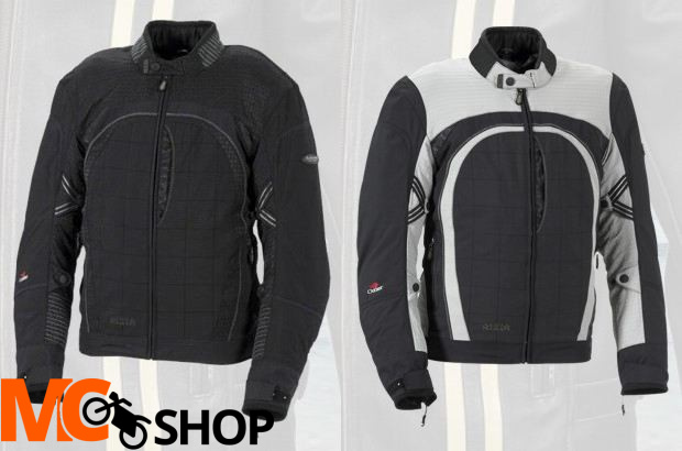 Nieprzemakalna kurtka tekstylna uszyta z oryginalnej Cordury® Du Pont®. - oddychająca, wiatro- i wodoszczelna membrana DRYWAY +® z możliwością wypinania /razem z ociepliną/ - wzmocnienia z HI-ART® - ocieplina OUTLAST, wypinana /razem z membraną/ - na barkach i łokciach ochraniacze z atestem CE i bezstopniową regulacją położenia - miejsce na atestowany ochraniacz pleców Back Converter - zamek spinający ze spodniami - wywietrzniki - elementy odblaskowe Krój męski - dostępne rozmiary 48, 50, 52, 54, 56 i 58. Krój damski - dostępne rozmiary 38, 40, 42 i 44. Cena w katalogu 2008 to 1280 zł.