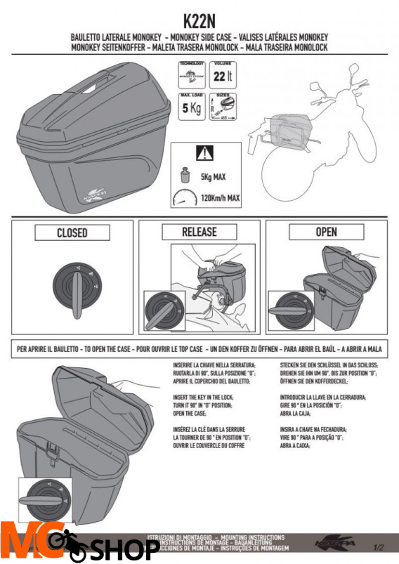 KAPPA KUFRY BOCZNE 22L MONOKEY K22N (PARA = 2 SZT) - dostępny