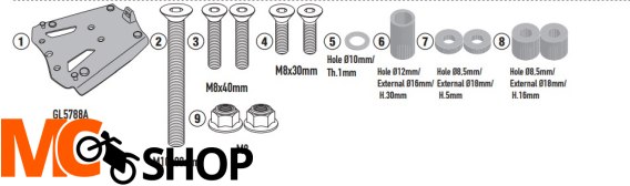 maksymalne obciążenie 6Kg / nie pozwala na montaż na kufrze zestawu świateł stop i/lub urządzenia do zdalnego otwierania kufra.