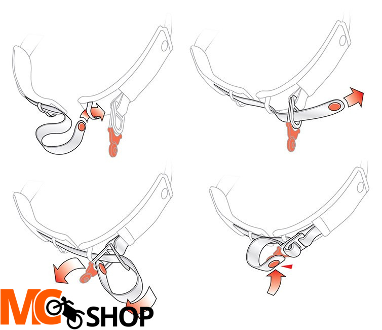Kask posiada zapięcie D-Ring, w systemie opatentowanym przez Suomy, zapewniającym stabilność, bezpieczeństwo i wytrzymałość.