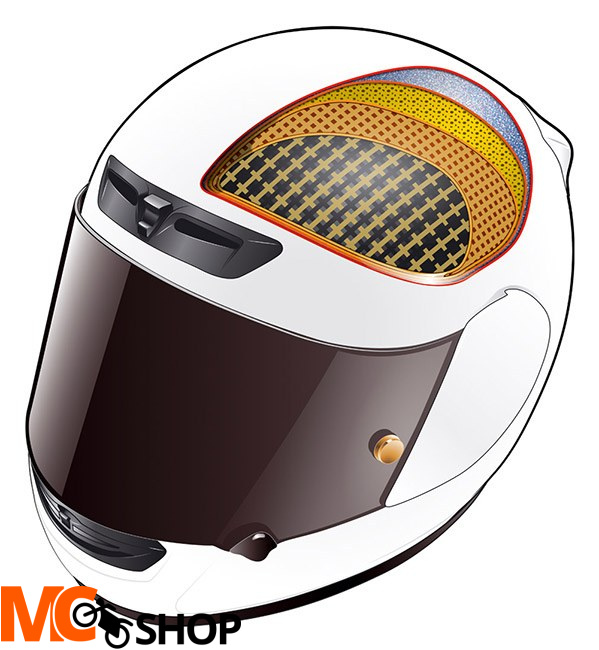 Skorupa kasku - wykonana Włoszech - posiada 3 rozmiary w zależności od rozmiaru kasku. Wykonana jest z włókien węglowych o różnej gramaturze w połączeniu z włóknem aramidowym.