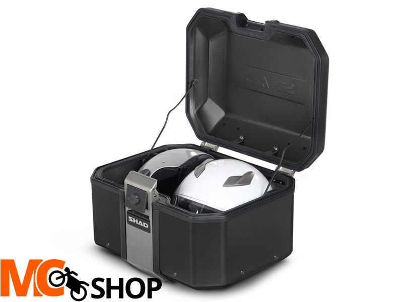 Aluminiowy kufer centralny o pojemności ok. 48 litrów. Wymiary: 49,5 x 41,8 x 32,2 cm. Ładowność: max. 10 kg.Opatentowany zamek zabezpieczający pokrywę oraz dźwignię zwalniającą. Haki do przytroczenia dodatkowego bagażu na wieku kufra. Kufer wodoszczelny i pyłoszczelny. UWAGA - Kufer nie zawiera płyty montażowej. Płyta montażowa sprzedawana oddzielnie: KSHD1BTRPA lub KSHD1B481PA. Dostępne akcesoria: - torba wewnętrzna regulowana KSHX0IB47 - oparcie pasażera KSHD0RI75. Do zamontowania kufra najczęściej konieczny jest stelaż dedykowany do konkretnego modelu motocykla.