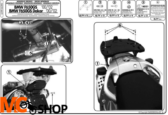 Stelaż centralny Kappa K6390 do BMW F650 GS 00-03 pod kufry w systemie MONOLOCK oraz MONOKEY